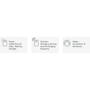 - Triplice allarme. Un avviso ottico, acustico e tattile evita l'accesso alle zone di pericolo.