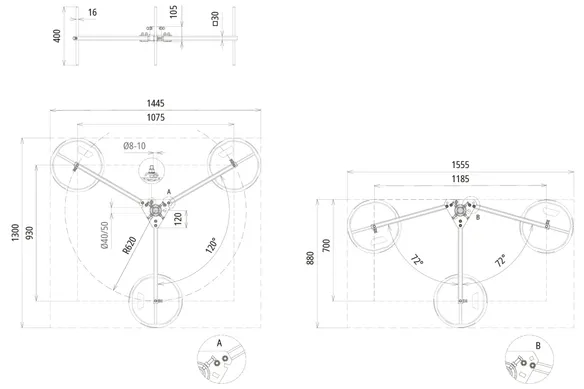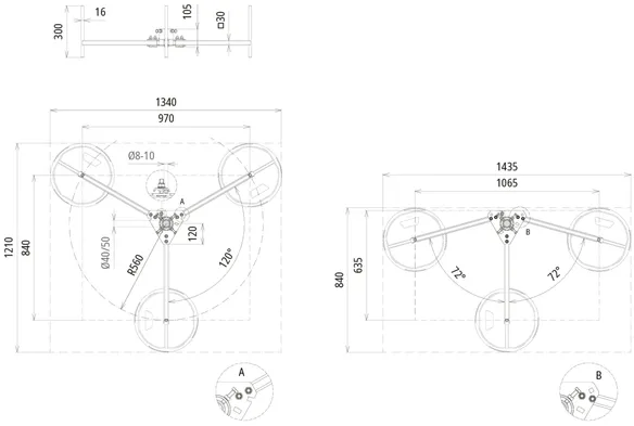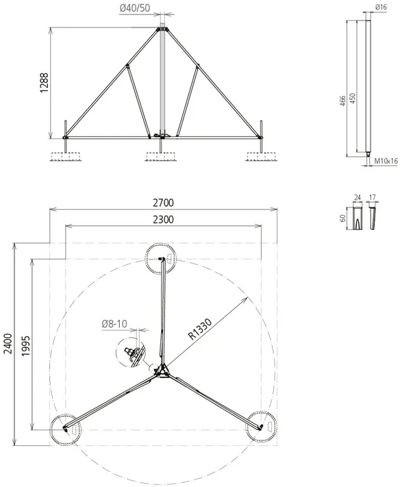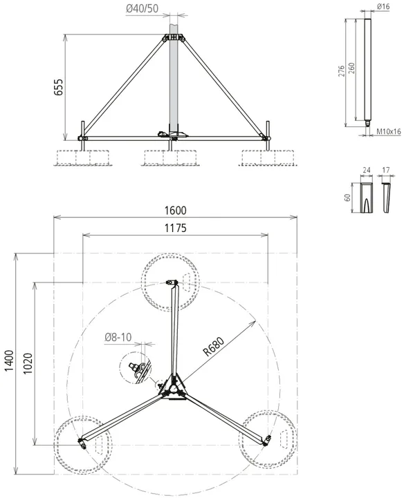 Per aste di captazione Ø 40 mm o tubi portanti Ø 50 mm con lunghezza 3200 mm (ad es. art. n. 105 440 o 105 300), senza ulteriore fissaggio ad elementi strutturali.