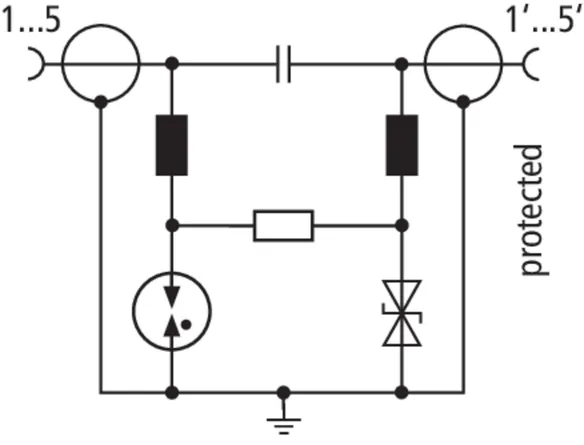 | C2 Corrente impulsiva nominale di scarica (8/20 µs) filo-schermo (In ) | 5 kA |