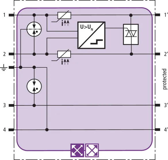 Modulo di protezione combinata in tecnologia actiVsense e RFID-LifeCheck, costruzione stretta, per la protezione di 2 coppie di fili a tensione uguale oppure diversa di interfacce simmetriche con separazione galvanica. Riconosce automaticamente la tensione d’esercizio del segnale applicato e adatta il livello di protezione in modo ottimale ad essa.