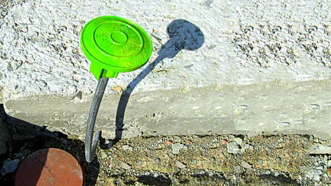 Marker for connection lugs, PVC, 70 mm, green / yellow Marker for connection lugs To be attached on round wires or strips As striking marker (required acc. to DIN 18014) during the construction phase.