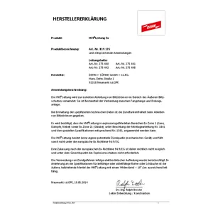 Il prodotto “conduttura-HVI è idoneo per l’utilizzo nelle zone Ex 1 (gas, vapori e miscele), come anche nelle zone Ex 21 (polveri combustibili).