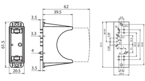 Zoccolo unipolare con elevate esigenze di distanze di scarica e vie di fuga tra collegamenti dei connettori e contatti di telesegnalamento. Per il montaggio su schede di circuiti stampati di dispositivi per i moduli DEHNgurad, con contatto di telesegnalamento per dispositivo di controllo (contatto di scambio pulito).