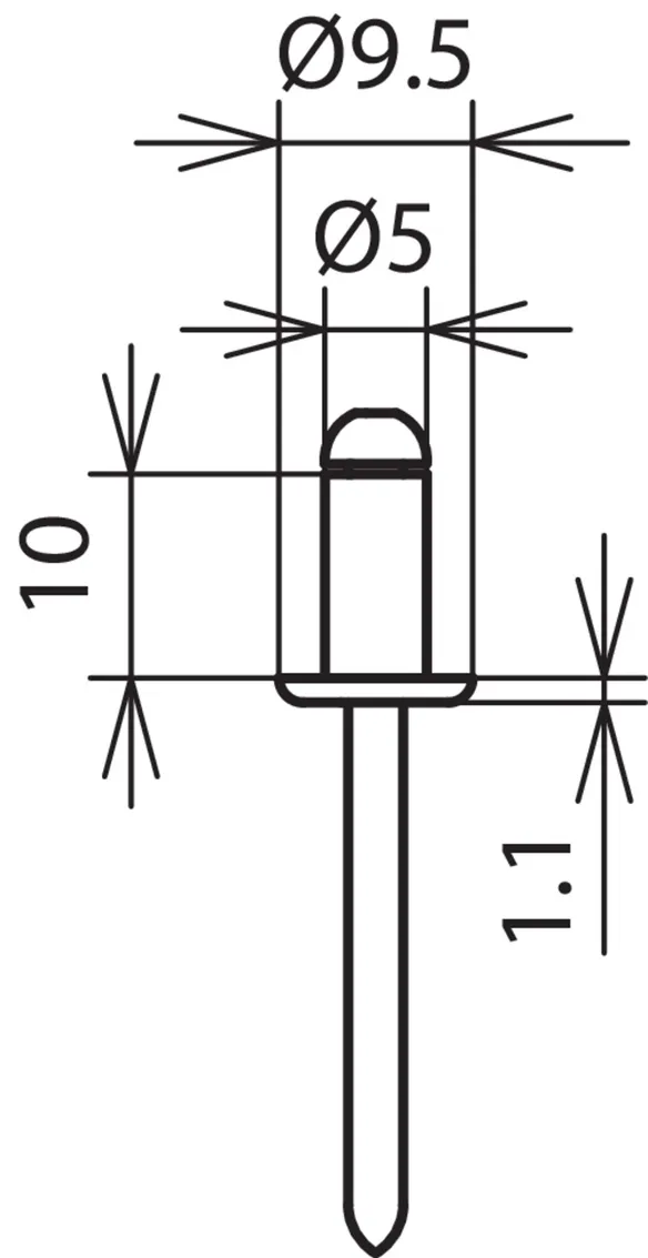 Rivetto cieco Al / INOX Rivetto cieco con chiodo in acciaio INOX per il collegamento di corde, trecce e cavallotti di ponticellamento, secondo CEI EN 62305-3 parte 1