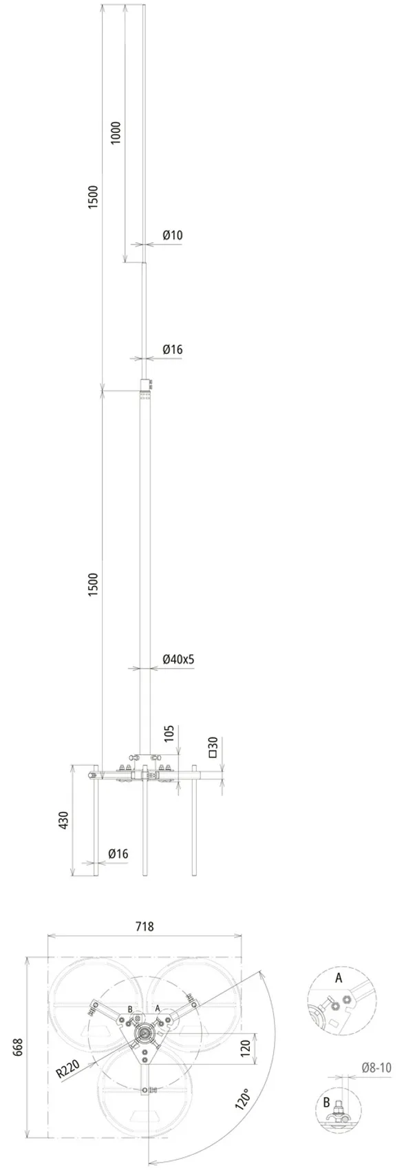 – asta di captazione tubolare rastremata Ø40 / 16 / 10 mm o Ø22 / 16 / 10 mm.