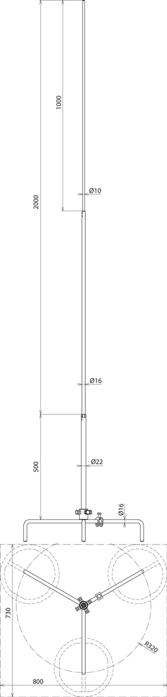 | Ingombro supporto con 3 zoccoli da 8,5 Kg (lu x la) | 730 x 800 mm |