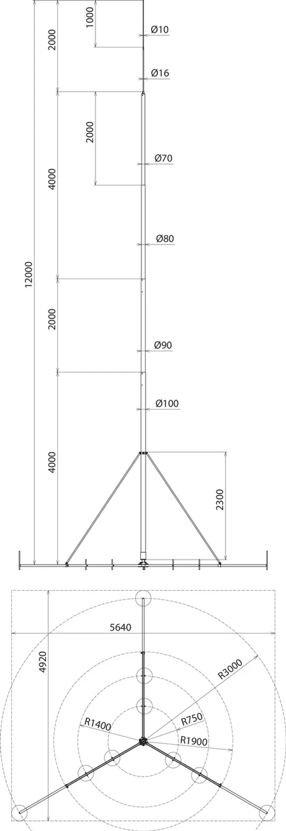 | Ingombro tripode | 4920 x 5640 mm |