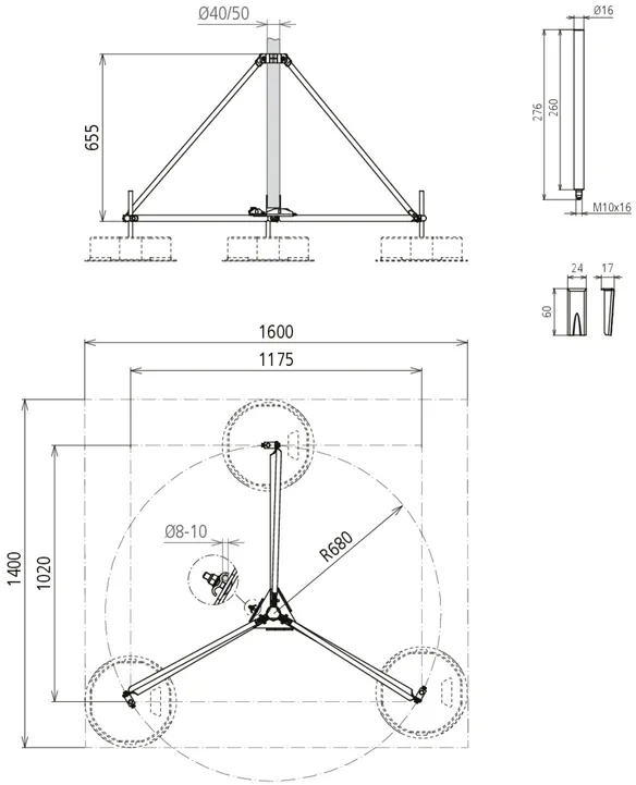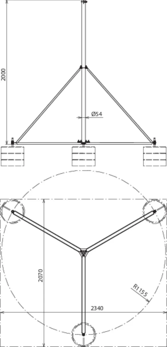 Per aste di captazione Ø 40 mm o tubi portanti Ø 50 mm con lunghezza 3200 mm (ad es. art. n. 105 440 o 105 300), senza ulteriore fissaggio ad elementi strutturali.