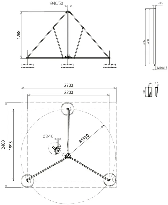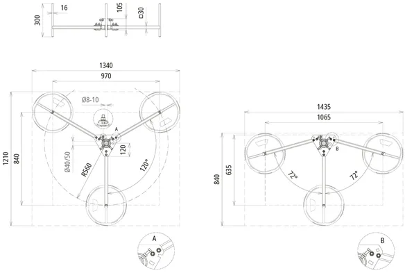 | Ingombro tripode | 960 x 960 mm |