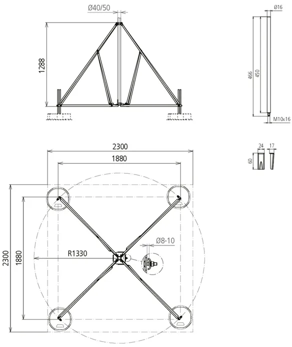 | Ingombro tripode | 1880 x 1880 mm |