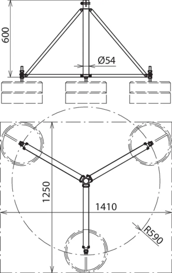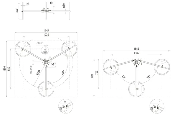 | Ingombro tripode | 1300 x 1450 mm |