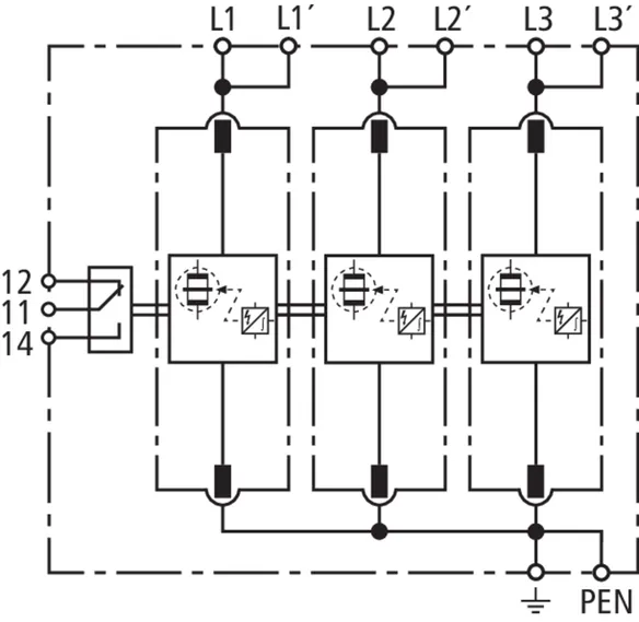 | Corrente impulsiva di fulmine (10/350 µs) [L1+L2+L3+N-PE] (Itotal ) | 100 kA |