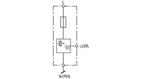 - Scaricatore per corrente di fulmine su base spinterometrica con fusibile di protezione integrato con portata di corrente di fulmine, con forma costruttiva compatta dell'involucro