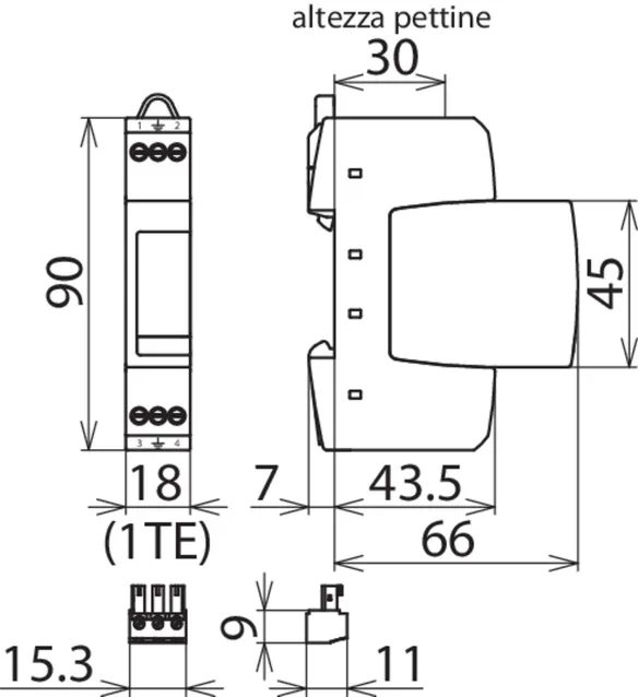- Costruzione stretta (esecuzione modulare) secondo DIN 43880