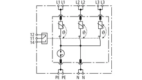 | Corrente max complessiva di scarica (8/20 µs) [L1+L2+L3+N-PE] (Itotal ) | 8 kA |