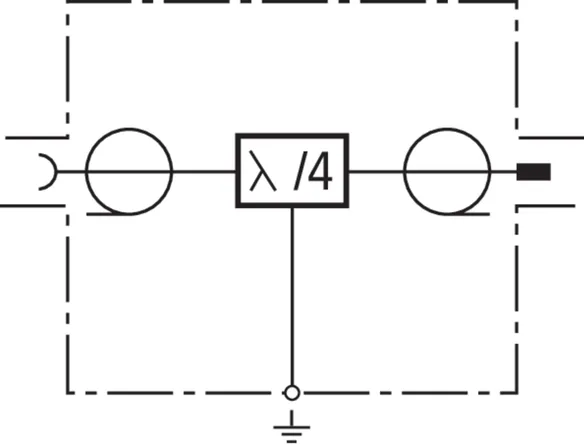 Scaricatore combinato in tecnica lambda/4, privo di manutenzione per applicazioni in multifrequenza (sistemi multicarrier). Gli apparecchi di protezione possono anche scaricare elevate correnti parziali di fulmine. L'alimentazione remota non è possibile, perché lo scaricatore costituisce per segnali a bassa frequenza un corto circuito galvanico. A banda particolarmente larga per tutti i servizi 4+3G e LTE.
