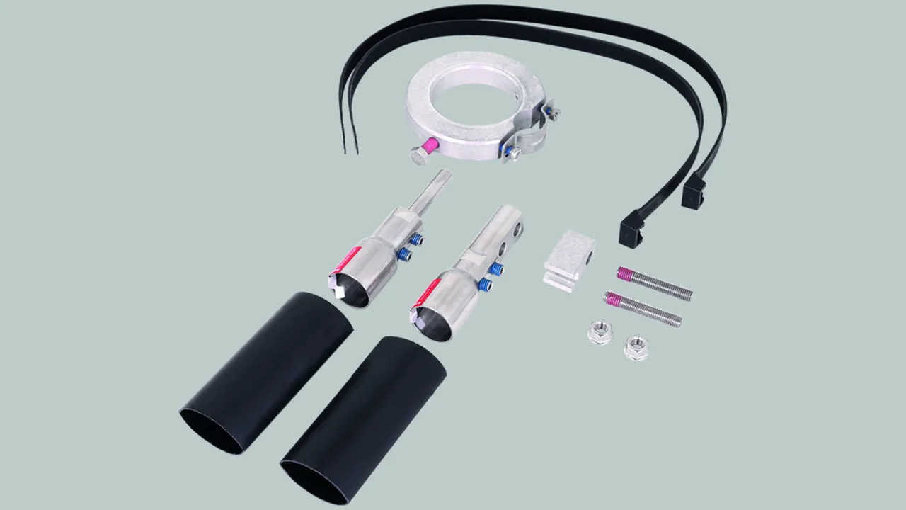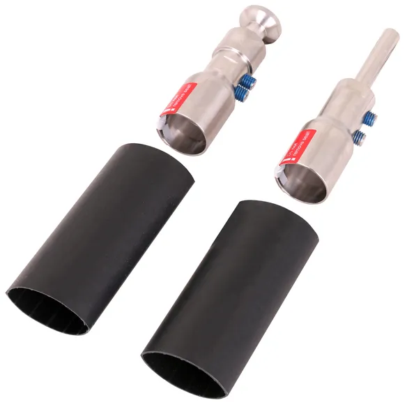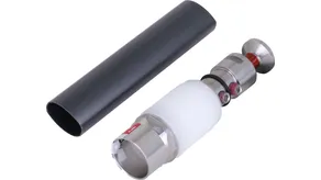 Elementi di connessione per attestare la conduttura HVI power long su entrambe le estremità, nella realizzazione del terminale della conduttura nel tubo portante (elemento terminale) ed elemento di connessione per collegare altri componenti della protezione da fulmini esterna o dell'impianto di messa a terra (due tubi termorestringenti compresi nella confezione).