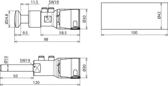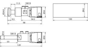 | Connessione | Perno Ø 10 mm, L 50 mm con filettatura M12 con grova |