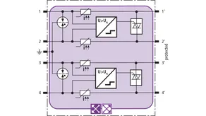 Modulo di protezione combinata in tecnologia actiVsense e RFID-LifeCheck, costruzione stretta, per la protezione di 2 coppie di fili a tensione uguale oppure diversa di interfacce simmetriche con separazione galvanica. Riconosce automaticamente la tensione d’esercizio del segnale applicato e adatta il livello di protezione in modo ottimale ad essa.