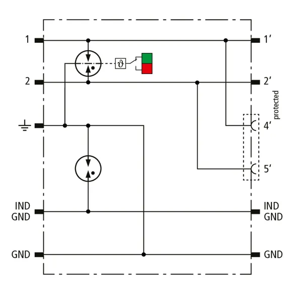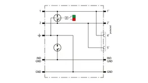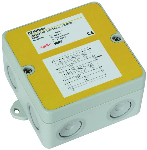 Scaricatore combinato in scatola in materiale plastico per montaggio a parete, con tecnologia actiVsense, per la protezione di 2 coppie di fili di interfacce simmetriche con separazione galvanica, a tensione uguale oppure diversa, con possibilità della messa a terra diretta oppure indiretta.