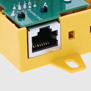 Limitatore di sovratensione compatto, esecuzione stretta, in scatola in materiale plastico per montaggio a vista con tecnica di collegamento Push-in e indicazione di funzionamento per la protezione di una coppia di fili con separazione galvanica di interfacce simmetriche in particolare per interfacce di telecomunicazione fino a VVDSL e G.fast (fino a 1 Gbit/s). Possibilità di schermatura diretta/ indiretta. Sul lato in uscita, a scelta, collegamento di una coppia di fili o di una linea patch con presa RJ45.