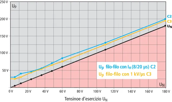 | C2 Corrente impulsiva nominale di scarica (8/20 µs) complessiva (In ) | 20 kA |