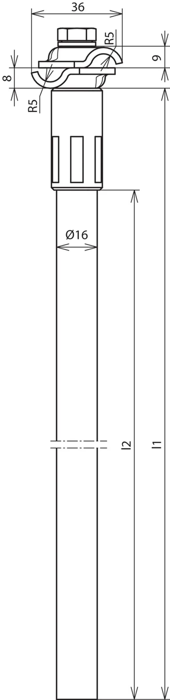 Distanziatore in vetroresina (PRFV) Ø 16 mm, stabilizzato ai raggi UV, colore grigio chiaro, per temperatura d’ambiente da -50 a +100 °C.