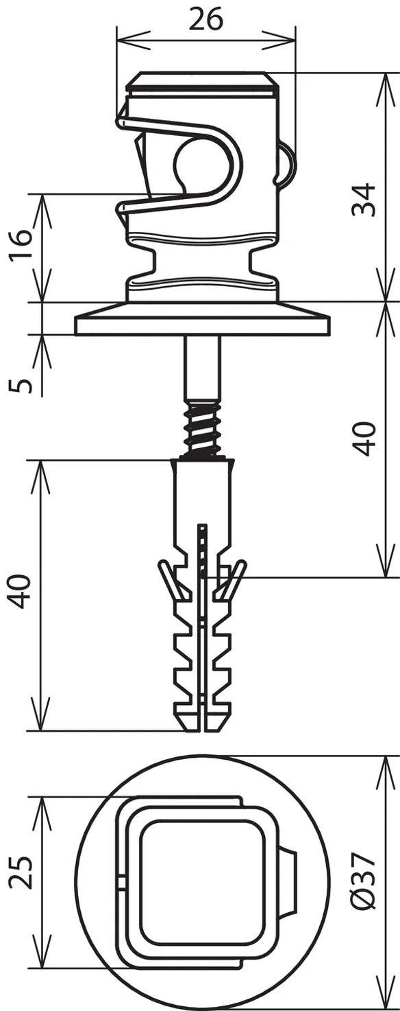 | Tassello in materiale plastico | Ø8 x 40 mm |
