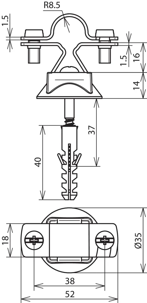 | Tassello in materiale plastico | Ø8 x 40 mm |