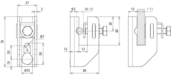 | Fissaggio | Ø15 / 9 x 20 mm |