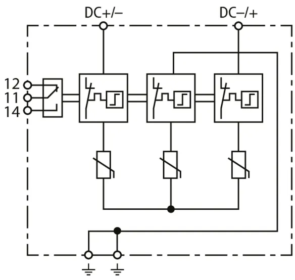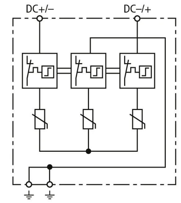| Corrente impulsiva di scarica complessiva (10/350 µs) [DC+/DC- -> PE] (Itotal ) | 12,5 kA |