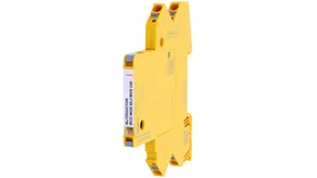 Limitatore di sovratensione modulare a risparmio di spazio, con larghezza di installazione 6 mm e tecnologia di connessione Push-in, con indicazione di stato per la protezione di 2 conduttori di interfacce di segnale multifilari con separazione galvanica. Con tensione nominale di 230 V e sezionamento del segnale per motivi di manutenzione.
