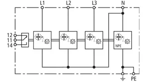 | Corrente impulsiva di fulmine (10/350) [L-N]/[N-PE] (Iimp ) | 12,5 / 50 kA |
