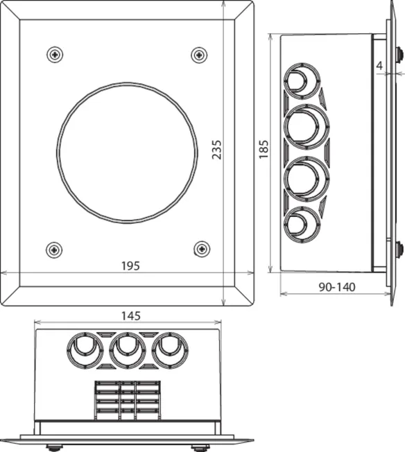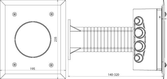Si può impostare la cassetta di sezionamento senza gradini da 90 a 140 mm e utilizzarla con il distanziatore aggiuntivo per spessori di materiali isolanti fino a 320 mm.