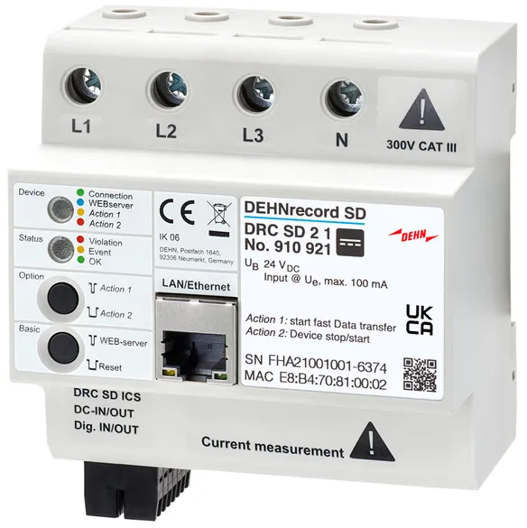 | Campo di misura corrente impulsiva (8/20 µs) (10/350 µs) | 4-100 kA |