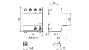 | Corrente impulsiva di fulmine (10/350 µs) [L1+L2+L3+N-PE] (Itotal ) | 30 kA |