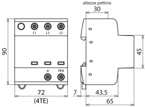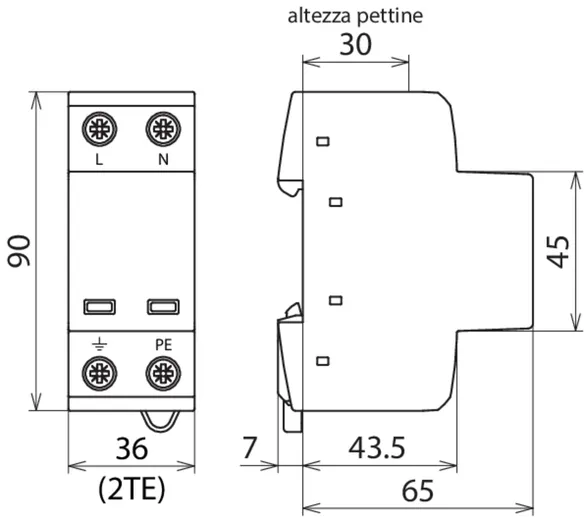 | Corrente impulsiva di fulmine (10/350 µs) [L-N]/[N-PE] (Iimp ) | 7,5 / 15 kA |
