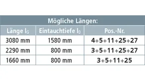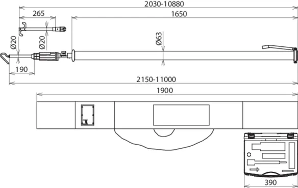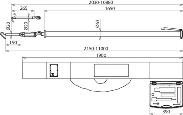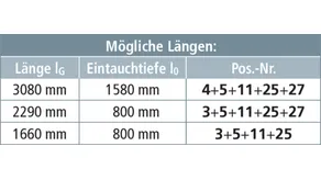 | Lunghezza totale (lG max / IG min ) | 11000 / 2150 mm |