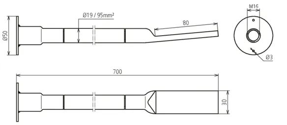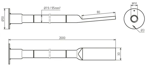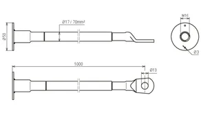I ponti di messa a terra sono richiesti per la messa a terra, per i circuiti di corrente di ritorno e per l’equipotenzialità nel campo delle linee ferroviarie. La variante per messa a terra di grandi tubi è destinata all’utilizzo per pali e grandi tubi di fondazione. Il prodotto è costituito da un cavo in rame con boccola pressata su di esso e piastra di connessione in INOX con fori integrati per il fissaggio alla cassaforma su un’estremità e un capocorda sull’estremità opposta. Il capocorda serve a creare con i pali o grandi tubi di fondazione una connessione resistente alla corrente di cortocircuito. La flessibilità del cavo facilita all’utilizzatore l’installazione nell’armatura. Questo ponte di messa a terra possiede inoltre l’approvazione tecnica delle ferrovie tedesche e può quindi essere utilizzato sulla rete ferroviaria tedesca senza problemi di compatibilità progettuale.