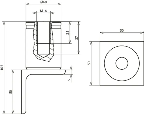 | Dimensioni dell’angolare (lu x la x p) | 50 x 50 x 5 mm |