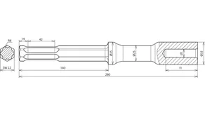 Innesto: innesto esagonale, apertura 28 x 160 mm