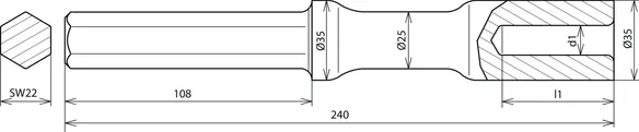 Innesto: innesto esagonale, apertura 22 x 108 mm