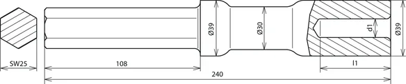Innesto: innesto esagonale, apertura 25 x 108 mm