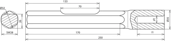 Innesto innesto esagonale, apertura 28 x 160 mm