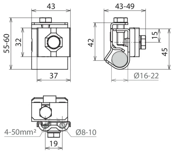 | Collegamento (rigido / semirigido) | 4-50 mm2 |