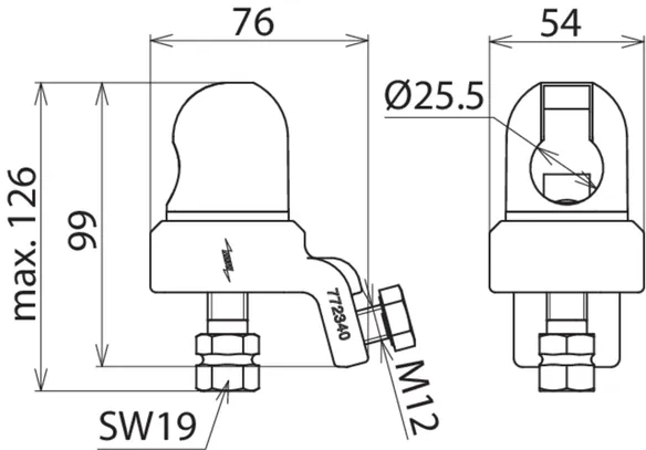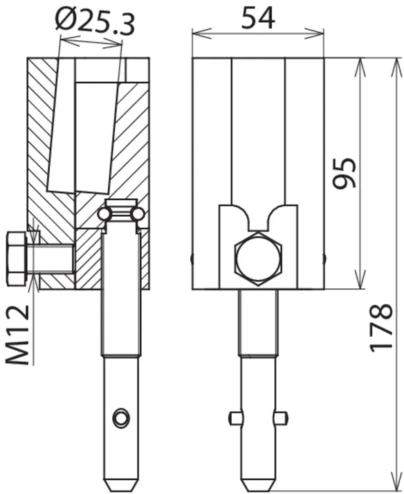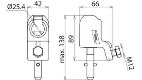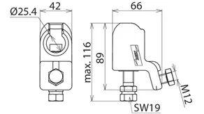 | Per perno tondo di contatto Ø | 25 mm |