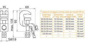 | Per sezione corda Cu | 16 ... 150 mm2 |