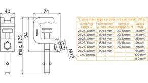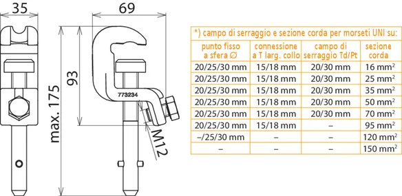 | *) vedi tabella campo di serraggio e sezione corda massima per pinze universali | |