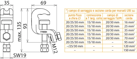 | Per sezione corda Cu | 16 ... 120 mm2 |