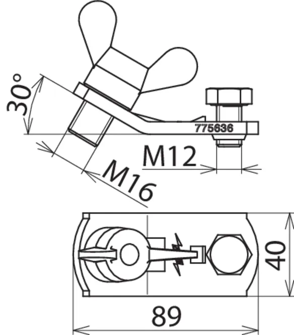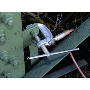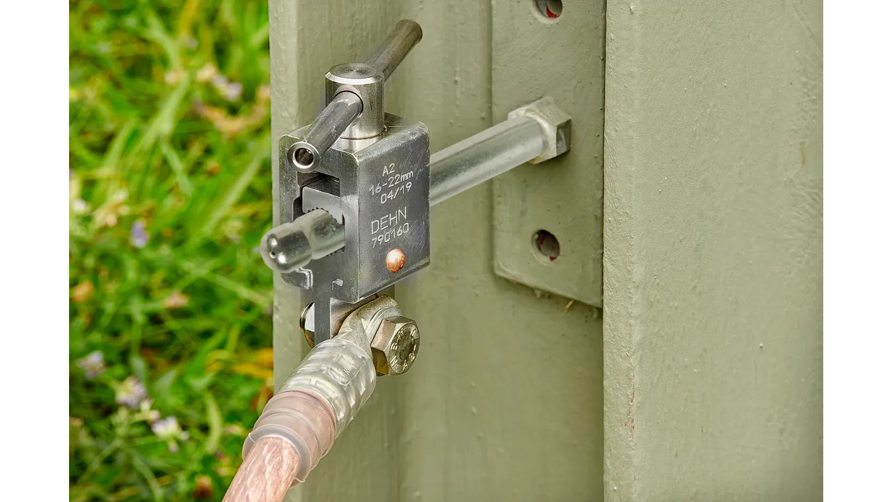 - Per la connessione sul lato terra a punti fissi a sfera, perni di connessione a “T”, conduttori tondi e piatti, pezzi di collegamento e profili piatti
